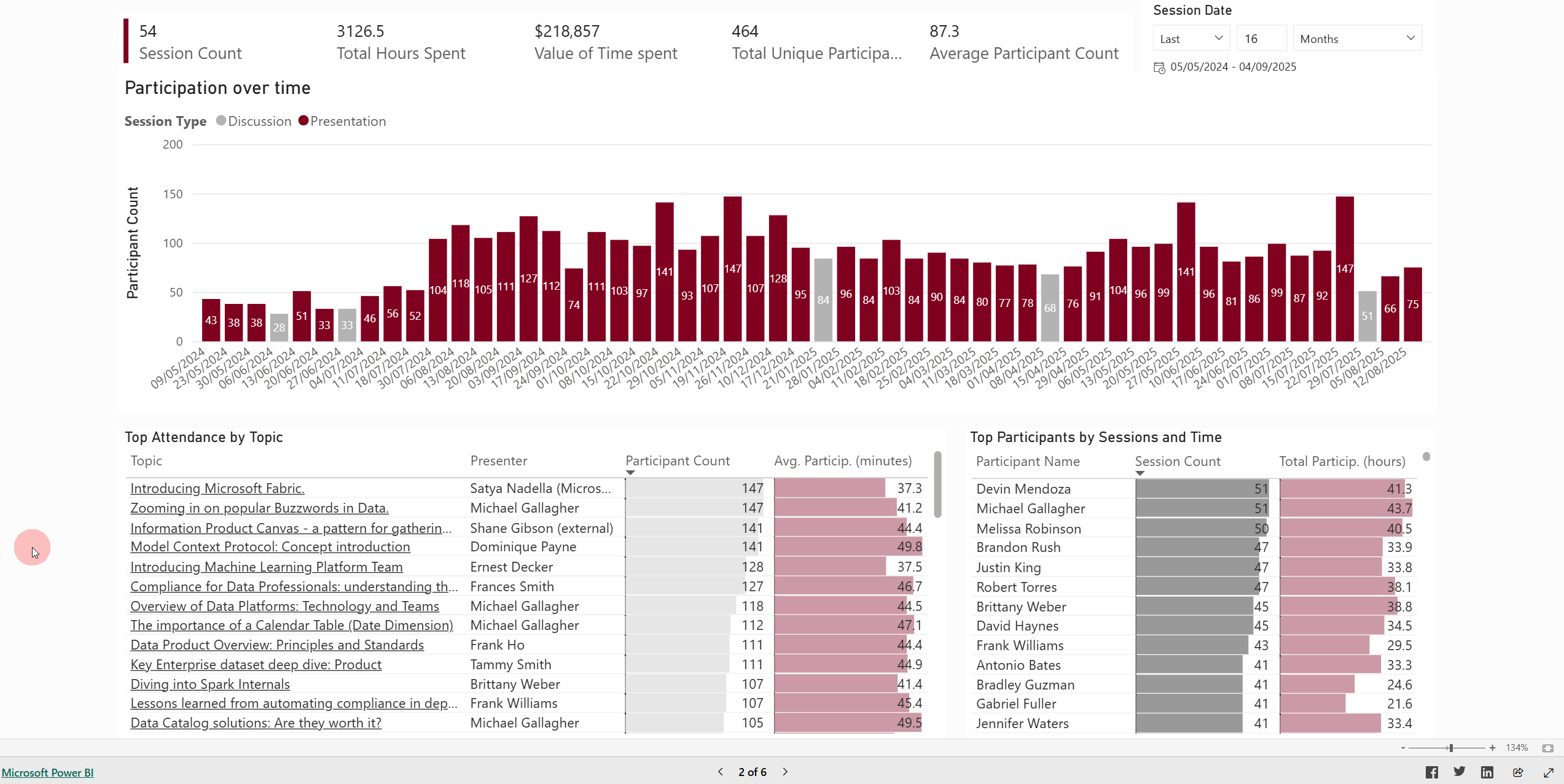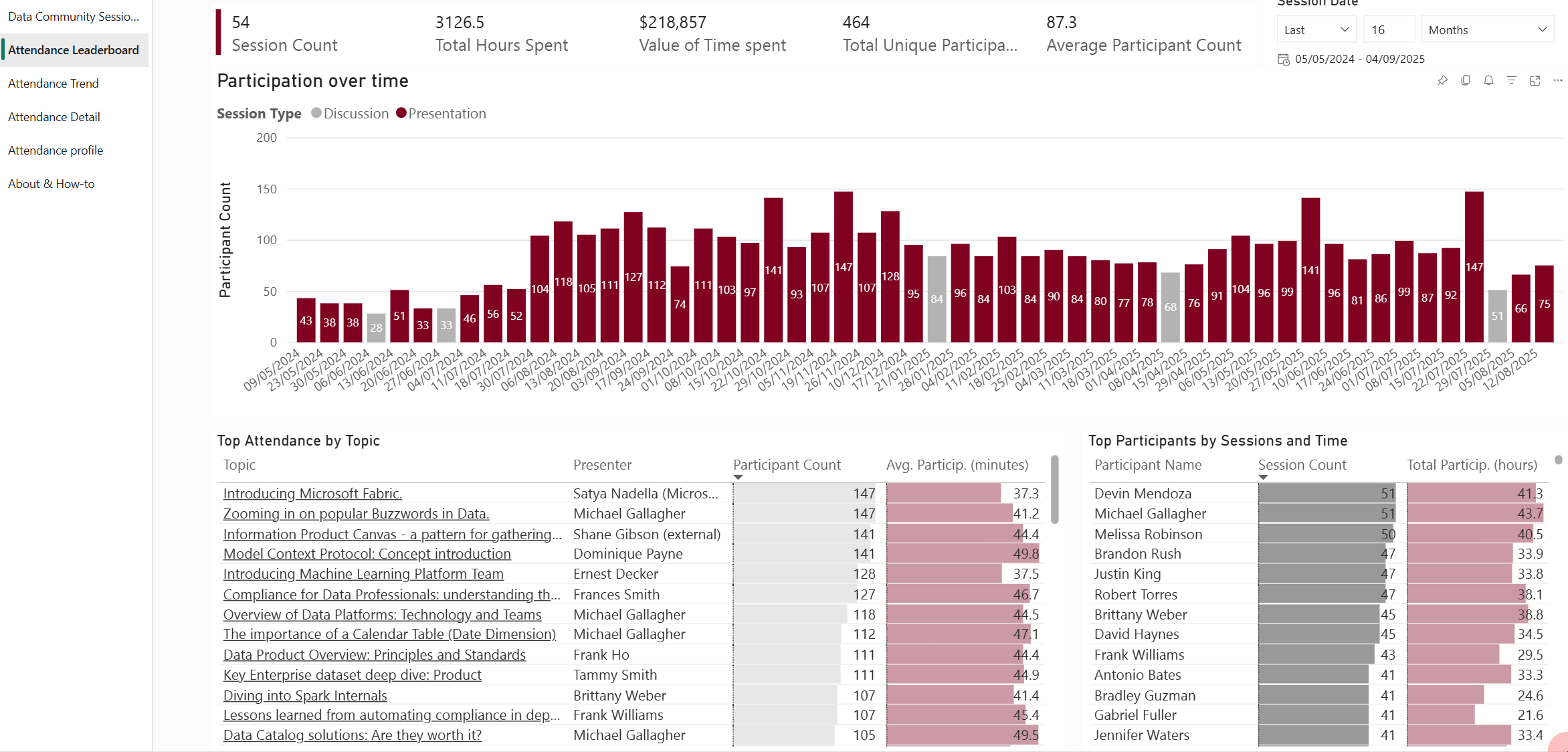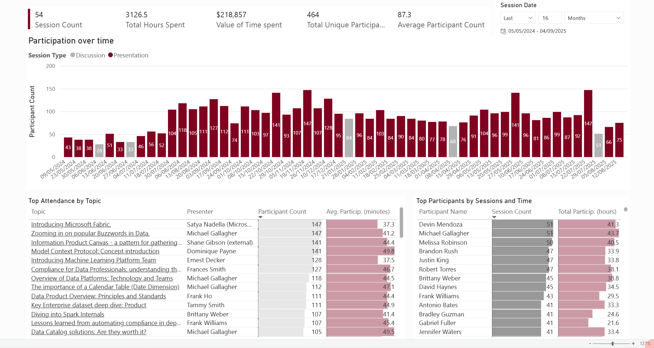 Zooming in on the customers/stakeholders of the data community. By Session count or Participation time - top or bottom - all available on the same page using just a couple of clicks: