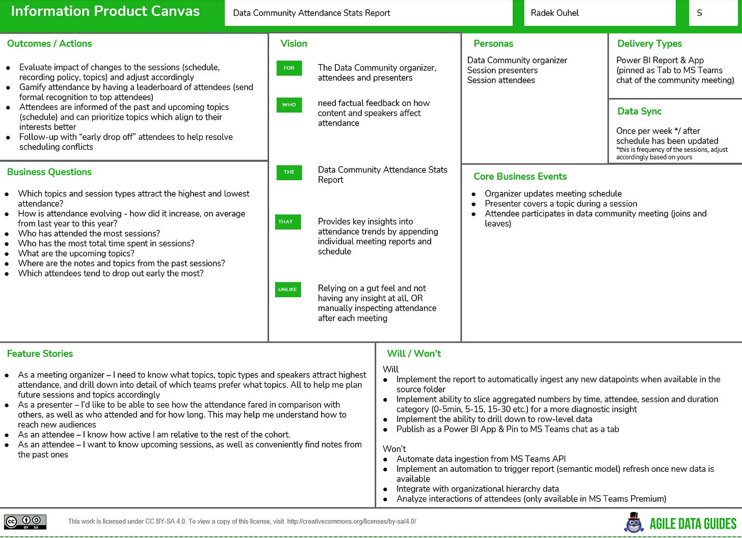 So let’s do it properly. I’ll use the Information Product Canvas to frame the business questions, then show you the report, and finally share how you can build your own.