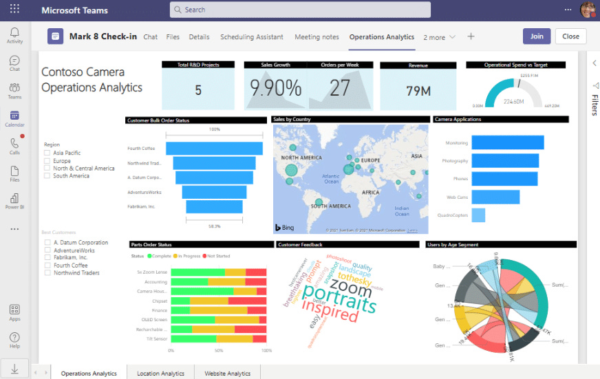 You can also embed the Power BI report as a new tab in your Microsoft Teams chat - ensuring everyone always has the agenda at their fingertips. Microsoft may not always have a best-in-class product, but the ecosystem effect is very useful in situations like these.